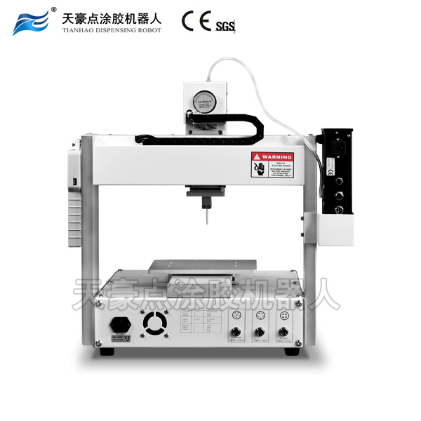 機(jī)器搭載50ml針筒式雙組份膠專用精密膠量控膠系統(tǒng),一般適用于固定體積比例1:1,2:1,4:1,10:1的50ml針筒式包裝的AB雙液膠的產(chǎn)品點(diǎn)涂膠,其可代替人工在各種平面或曲面的產(chǎn)品上進(jìn)行高精度微量的雙液快速打點(diǎn)、畫線、畫圓等自動(dòng)點(diǎn)涂膠作業(yè)。