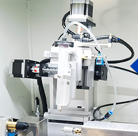 控膠系統部分:300ML大針筒+預涂膠專用膠閥+針頭。采用300ML大針筒作為儲料裝置,避免頻繁添膠,適合大批量生產;搭載專門針對厭氧膠特性而開發的天豪厭氧膠專用膠閥,能夠輕松解決使用過程中膠水易堵的現象,涂膠均勻不溢膠,可節省膠水30%以上.;